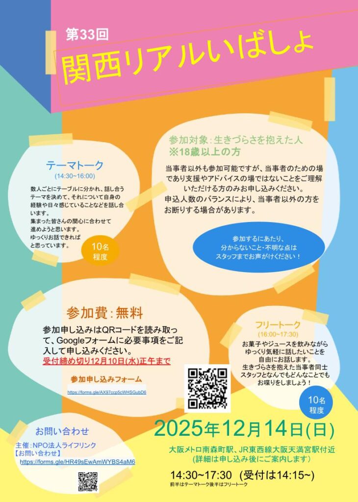 12月に開催する第33回関西リアルいばしょの申し込み受付を始めました。