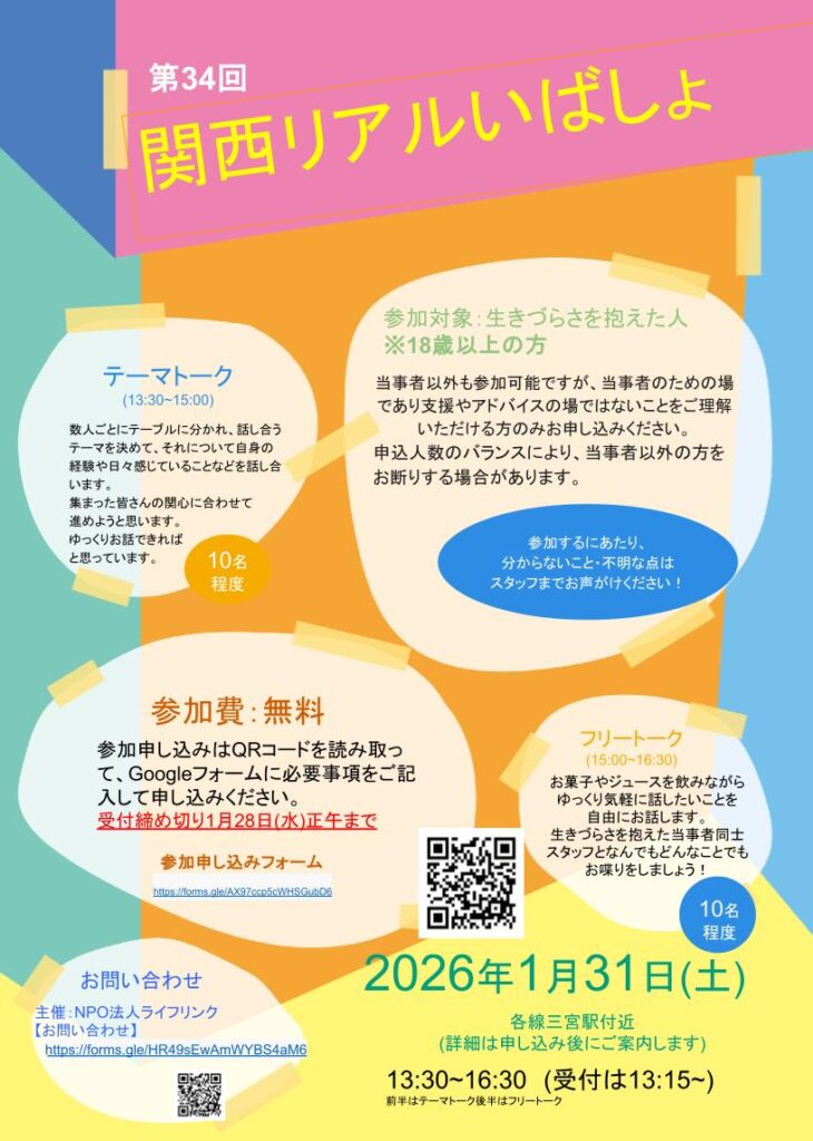 2026年1月に開催する第34回関西リアルいばしょの申し込み受付を始めました。